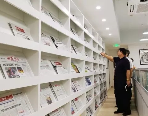 中国记协书记处书记张百新参观中国行业报协会报栏 朱胤元 摄