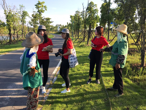 第一天在凤凰河景观带调研时,室外温度已达到40度。车载着我们在景观带的公路上行驶时,沿途基本上没有行人经过。我们掀开被太阳晒得发烫的车窗帘往外望,心里却感到一阵虚空。这时,几位植被养护工和一位在河边垂钓的居民进入了我们的视线。随行的周庆安老师立即请求司机师傅停车,带领我们上前和他们攀谈。后来,我们从交谈中获取了很多关于凤凰河变迁的故事。周老师告诉我们,新闻记者就需要寻找机会,主动和当地人交流,要谦虚,要接地气,多和老百姓请教学习。