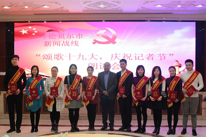 为庆祝党的十九大胜利闭幕,迎接新中国第十八个记者节暨中国记协成立80周年华诞,11月3日,呼伦贝尔市市委宣传部和市新闻工作者协会共同举办新闻战线“颂歌十九大,庆祝记者节”朗读会。市政协副主席白爱军出席朗读会并致辞。