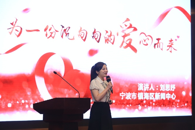 镇海新闻中心全媒体采访部记者刘思妤在演讲