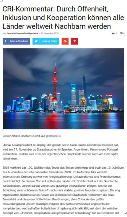 德国《德中汇报》网2018年11月23日转发