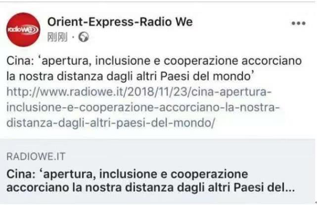 意大利Radio We电台网站2018年11月23日转发