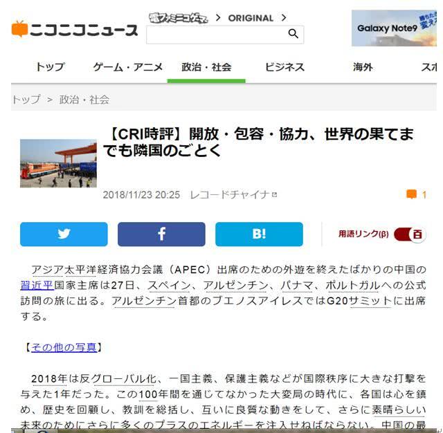 日本Niconico网站2018年11月23日转发