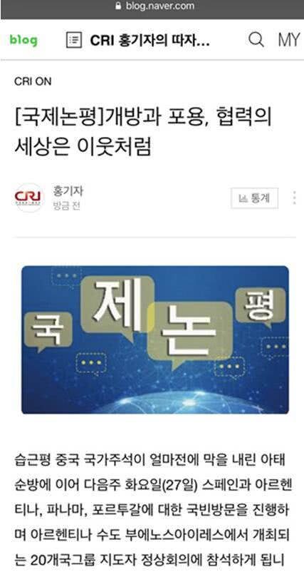 韩国NAVER博客2018年11月23日转发