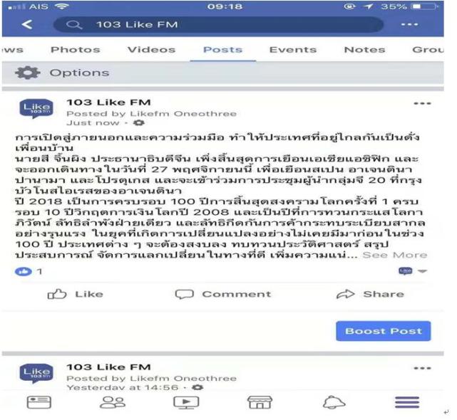 泰国Like FM103电台facebook账号2018年11月24日转发