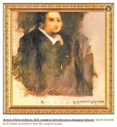 2018年10月,纽约佳士得拍卖行首次拍卖AI绘制画作,最终以43.25万美元的高价拍出