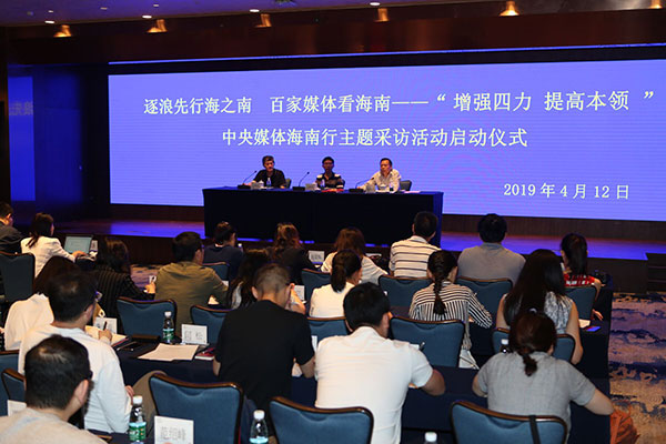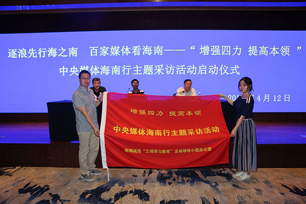 4月12日上午,由中国记协、全国三教办和海南省委宣传部、海南省记协联合组织的“增强四力 提高本领”中央媒体海南行主题采访活动在海口启动。本次活动旨在深入学习贯彻习近平新时代中国特色社会主义思想和党的十九大精神,围绕宣传贯彻习近平总书记“4•13”重要讲话精神,为海南“改革开放再出发”营造良好舆论氛围,推动新闻工作者不断增强“脚力、眼力、脑力、笔力”。