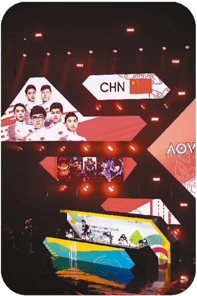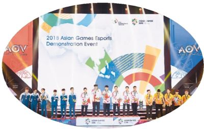 中国队在第18届亚运会电竞项目中夺冠。新华社记者 张金加摄