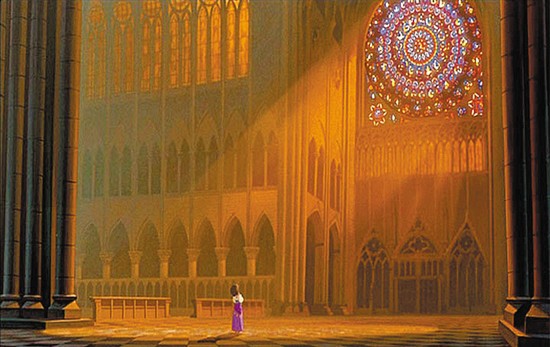 除了真人版《巴黎圣母院》,1996年迪士尼还将这部名著改编成动画片《钟楼怪人》。片中精致地呈现了巴黎圣母院的多个场景,包括著名的玫瑰花窗。