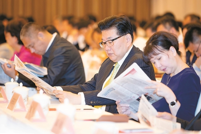 参会嘉宾阅读当天的《解放日报》。 孟雨涵 赖鑫琳 摄