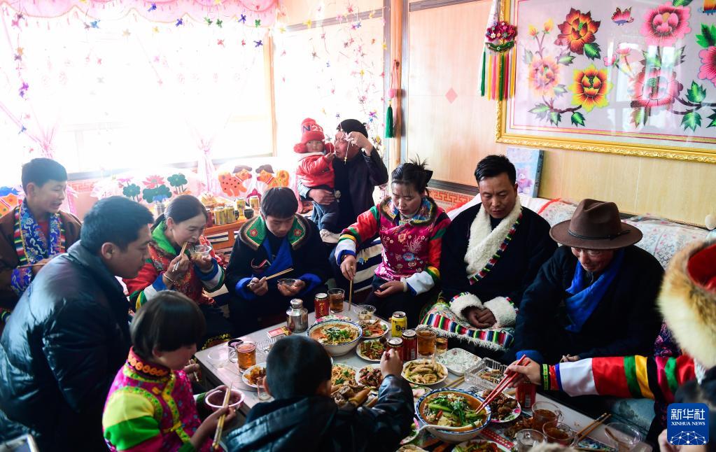 贴窗花、挂灯笼、炸盘馓……农历大年初一,家住青海省海东市互助土族自治县丹麻镇东家村的吴玉清家里热闹非凡,她准备了一桌丰盛的土乡佳肴,和亲戚们欢聚一堂共度佳节。