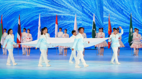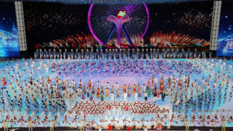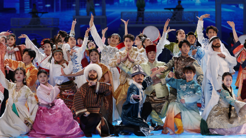 代表亚洲国家/地区的舞者身着特色民族服饰翩然起舞,舞姿有的轻盈曼妙、有的热情奔放。立面屏幕中,沃野、沙漠、绿洲、雪原、雨林等亚洲典型风光随之依次呈现。[ 2025-02-07 21:20 ]