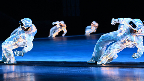 数十位演员身着智能数控发光服装,做出摆臂、背手、搓雪回转等专业动作,呈现“脱离地心引力控制”的视效,模拟“子弹时间”的定格效果。击碎的冰块从“垂落纱幕”飞溅至“长幅巨幕”,如同“冰球”迎面而来,带来震撼的视觉体验。[ 2025-02-07 21:13 ]