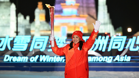 火炬传递及点火仪式开始。哈尔滨2025年第九届亚洲冬季运动会火炬,进入开幕式分会场——哈尔滨冰雪大世界。[ 2025-02-07 21:26 ]