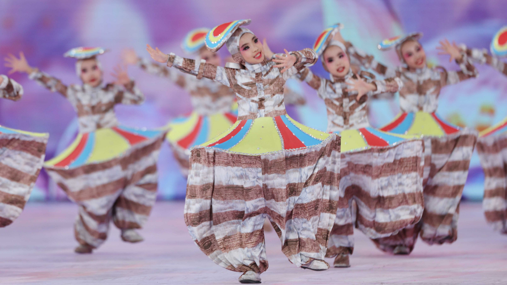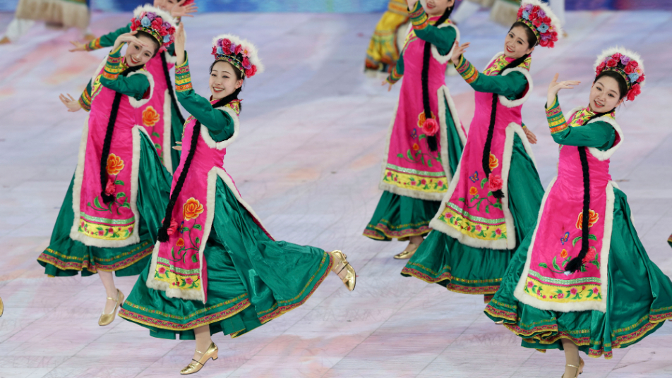 舞蹈演员在亚冬会开幕式暖场表演中
