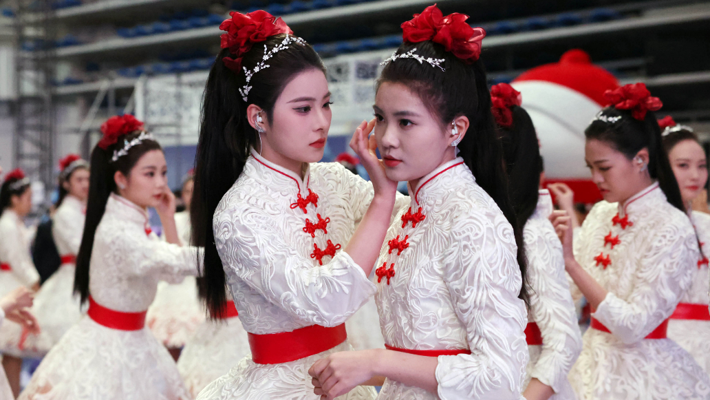 演员在开幕式后台准备演出