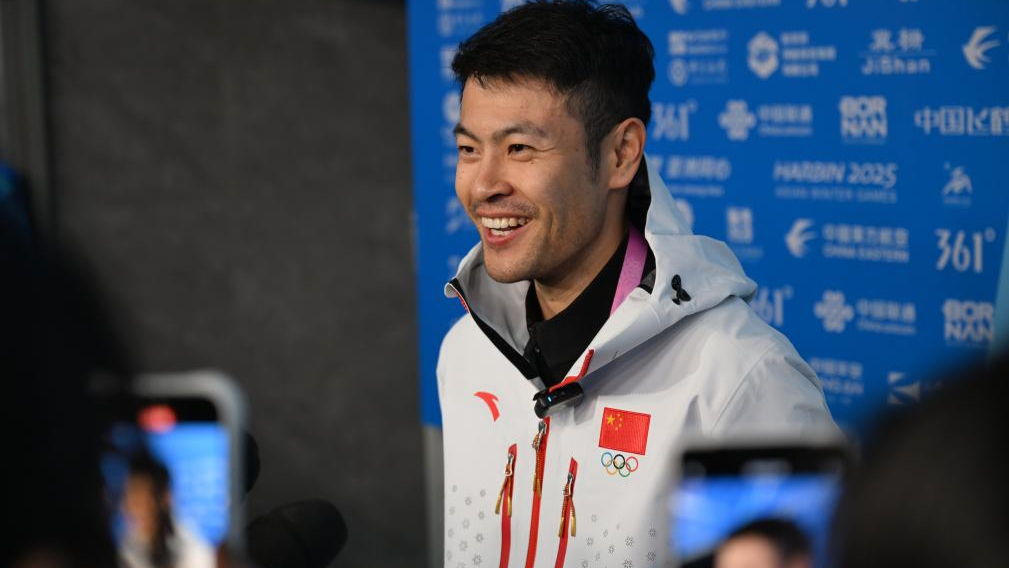 哈尔滨亚冬会开幕式中国体育代表团旗手宁忠岩接受集体采访