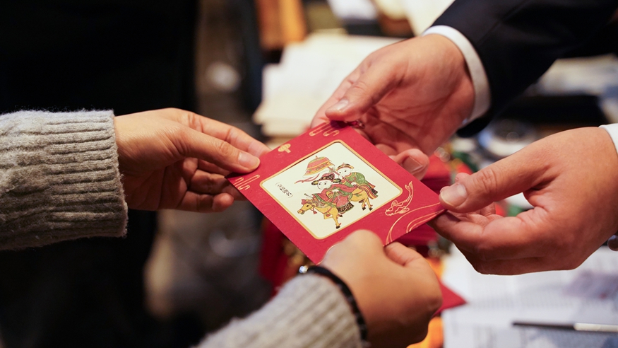 评审结果公布,年味十足的旋律响彻会场,春节文化符号占据会场大屏:春联、舞龙、中国结等元素轮流登场,现场顿时喜气洋洋。乐声渐息,现场数十个国家代表起身,来到中国代表团席前握手祝贺。一些代表甚至能用流利的中文说“春节快乐”。我方的回礼也颇有“年味儿”——装着福卡的红包,寓意将春节申遗成功的欢乐分享给更多人。