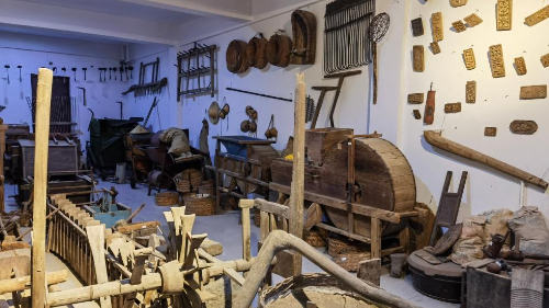 打铁炉、轧棉机、织布机、耕地犁,补锅佬、熟皮匠等“九佬十八匠”所用的工具,坐商行商走街串巷所用的挑子、背箱和推车……在山东省济南市平阴县孝直镇,有一座山东乡忆民俗文化博物馆,馆藏有上百个门类的30多万件(套)藏品,主要展示明清以来社会生产生活领域的日常器具,涵盖农耕纺织、编织刺绣、百业挑担等多个领域。