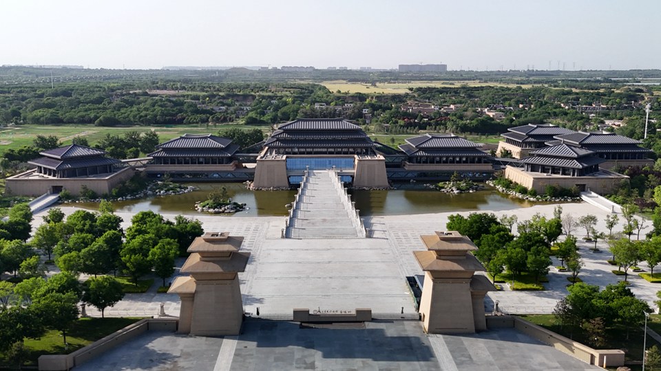 秦汉馆地处陕西西咸新区秦汉新城,毗邻秦咸阳城遗址核心宫殿区和西汉帝陵遗址带,占地面积约300亩,其中展陈面积1万余平方米。秦汉馆主体建筑群由中国工程院院士张锦秋主持设计,7座建筑呈北斗七星布局,彼此以架空廊道连接。