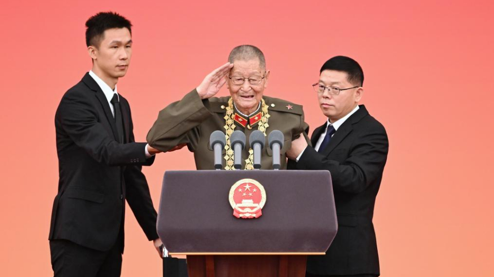 颁授仪式结束后,新华社记者采访了国家勋章和国家荣誉称号获得者及其家属、学生。大家表示,要牢记习近平总书记的殷殷嘱托,坚定理想、务实担当,不忘初心、永远奋斗,矢志把强国建设、民族复兴伟业推向前进。