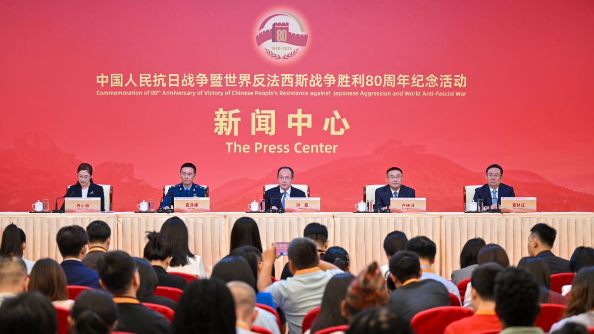 中国人民抗日战争暨世界反法西斯战争胜利80周年纪念活动新闻中心定于2025年8月28日(星期四)上午10时,在梅地亚新闻中心二层新闻发布厅举办中国人民抗日战争暨世界反法西斯战争胜利80周年纪念活动第一场记者招待会。外交部部长助理洪磊,文化和旅游部副部长卢映川,阅兵领导小组办公室副主任、中央军委联合参谋部作战局少将副局长吴泽棵,北京市委常委、常务副市长夏林茂介绍中国人民抗日战争暨世界反法西斯战争胜利80周年纪念活动有关筹备进展,并回答记者提问。