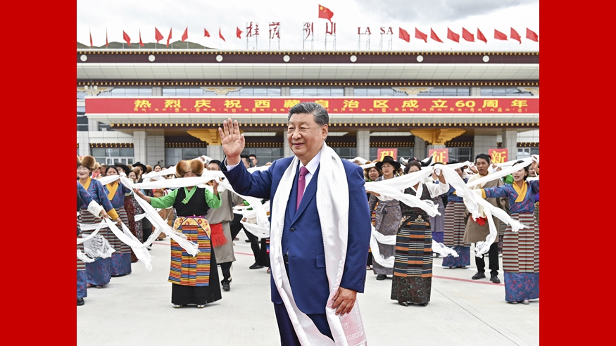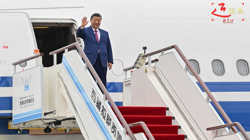 习近平率中央代表团抵达拉萨出席西藏自治区成立60周年庆祝活动