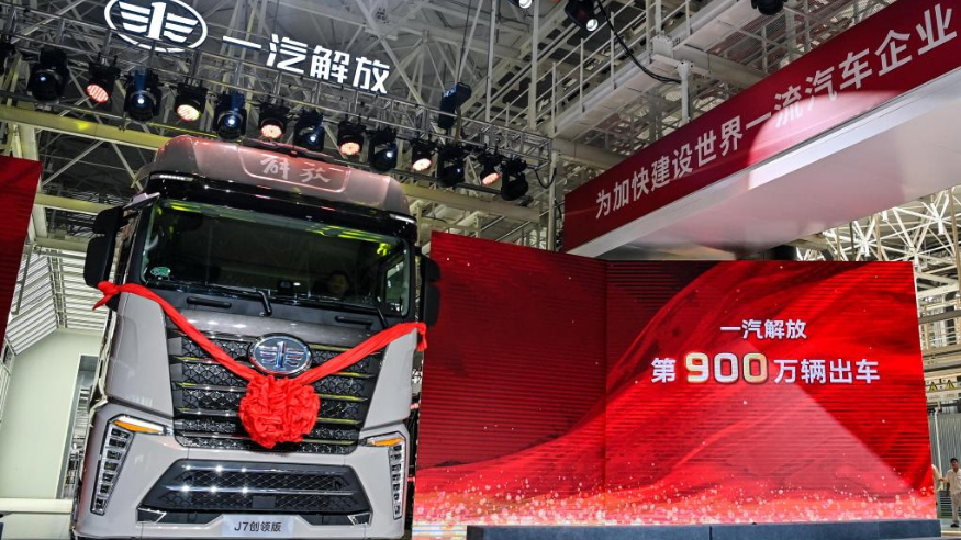 AGV(自动导航运输车)往来穿梭,多功能机器人挥舞手臂,数字孪生模型全程监控……一汽解放J7智能工厂内,一派热火朝天的生产景象。这个工厂是一座商用车智能制造“超级工厂”,集自动化、柔性化、数智化于一体,为解放高端重卡产销持续走红提供了坚实支撑。