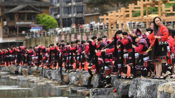 平塘,位于贵州黔南布依族苗族自治州的一座小城。站在平塘塘边镇的山脊上,一幅地势高低相差千米、冲击力极强的大自然画卷映入眼帘。平塘县地势西北高东南低,喀斯特区域面积2455.23平方公里,占县域国土面积的87.20%。这里就像奇幻的“喀斯特秘境”。群山如同绿色的海洋,“波涛”之间有一片“漏斗”状的天坑群。