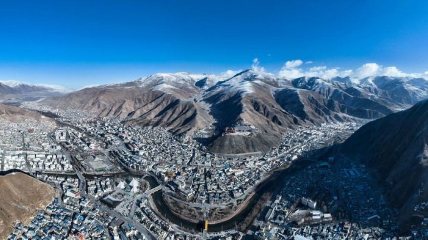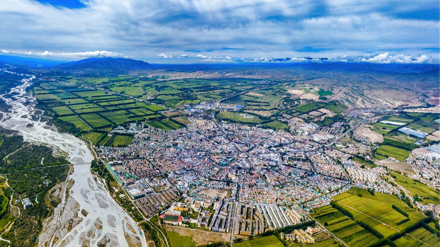 从空中俯瞰,在群山环绕之下,青海省玉树藏族自治州玉树市密集的建筑在山谷中拔地而起,巴塘河宛如翡翠玉带穿城而过。从长江源头奔涌而下的水流在这里形成一大片湿地,玉树市仿佛是一座镶嵌在湿地里的高原小城。玉树市位于青藏高原腹地,平均海拔超过4000米,没有来过这里的人心态首先便是对高海拔的恐惧,但真正走入这座城市,会发觉仿佛进入江南之地。
