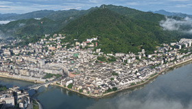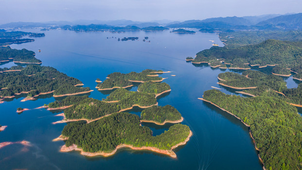 从空中俯瞰,淳安境内发达的水系犹如一根巨大的羽毛,静静安卧在浙江西部连绵起伏的丘陵之中。羽毛的枝干,是自西北向东南穿越而过的新安江。在羽毛的中心位置,一个拥有1078座岛屿,容量足以装下3000多个西湖的巨型人工湖——千岛湖,成为现代淳安的“灵魂”。