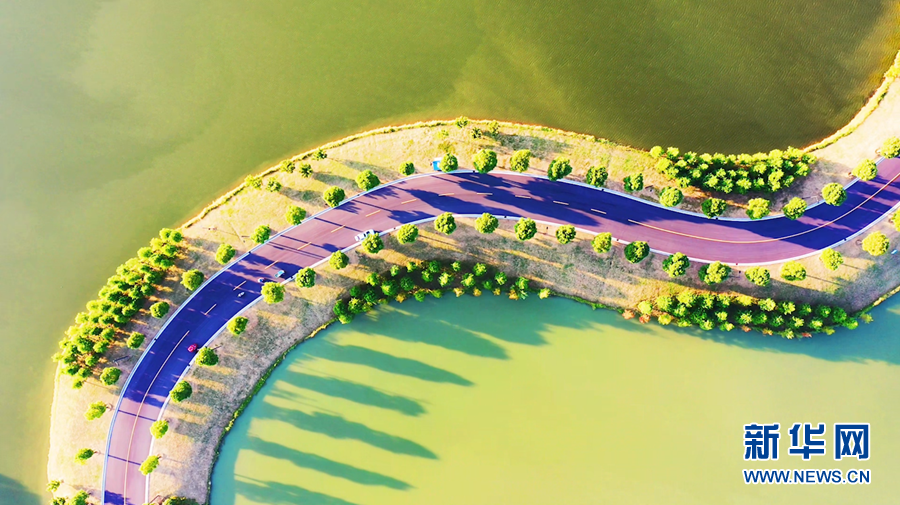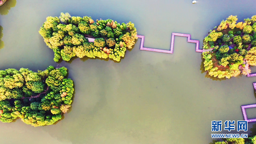 从空中俯瞰,一幅“城中水 水绕城 城中绿 绿绕城”人水亲和、绿水相依的秋日画卷徐徐展开。