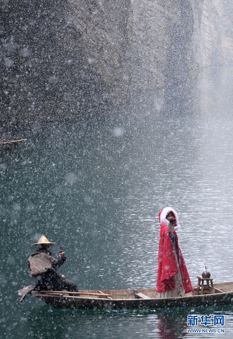 连日大雪,湖北省恩施土家族苗族自治州鹤峰县容美镇屏山村屏山峡谷白雪皑皑,美景如画。屏山峡谷以绝壁耸峙,碧水潺潺,“一线天”景观绵延十几公里而闻名。