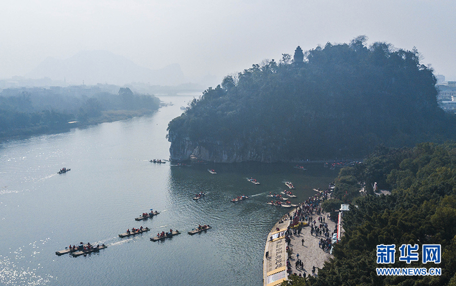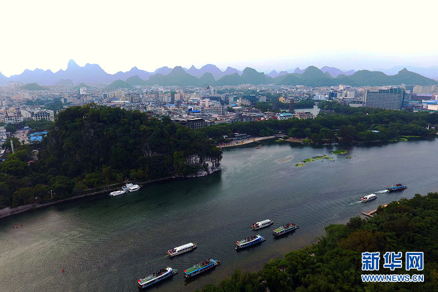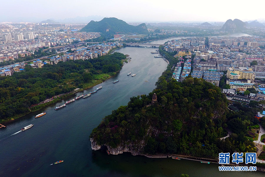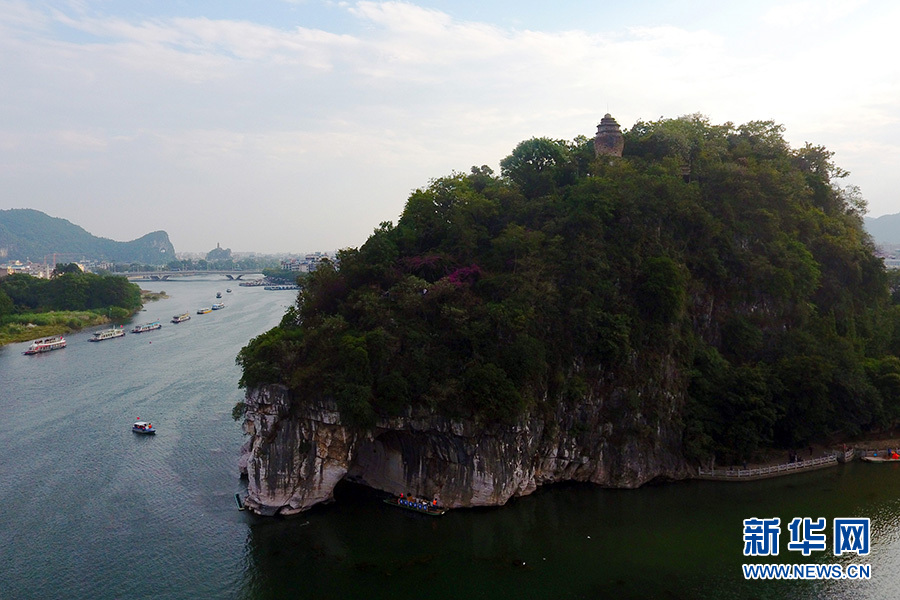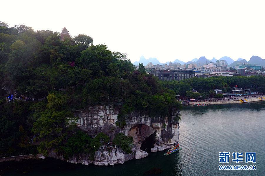 无人机航拍象鼻山景区。(资料图)新华网 刘君 摄