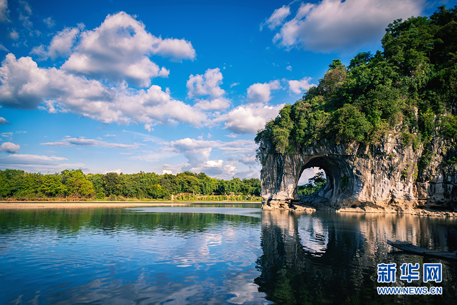 漓江倒影下的象鼻山。(资料图)(桂林市委宣传部提供)