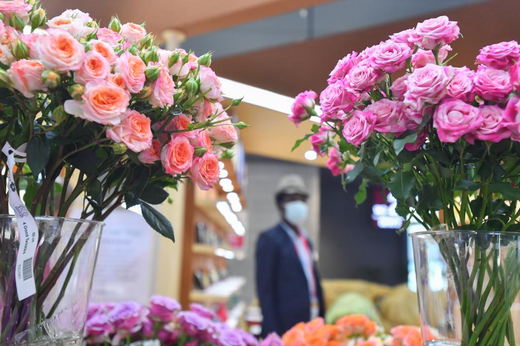2021年9月27日拍摄的在长沙国际会展中心展出的非洲鲜花。在第二届中国-非洲经贸博览会上,来自非洲的各种特色商品在长沙国际会展中心展出,引人驻足。(新华社记者陈泽国摄)