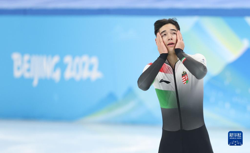 2月13日,匈牙利选手刘少昂在比赛中冲过终点。
