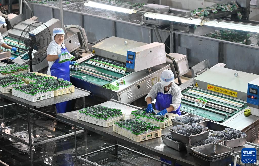 工人在位于福建漳州的紫山集团生产线上封装酱菜产品(2021年11月19日摄)。新华社记者 林善传 摄