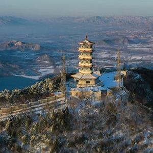 蟒山瞭望塔位于十三陵国家森林公园蟒山景区山顶(3月19日摄,无人机照片)。