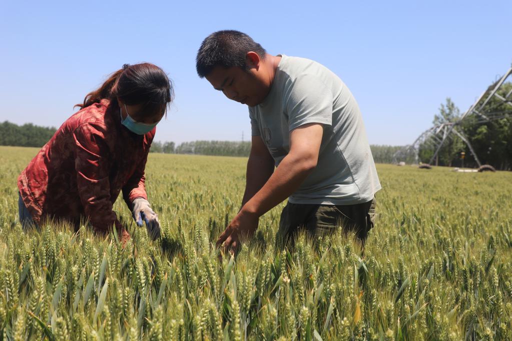 5月26日,邹平市明集镇种粮大户正在查看小麦成熟度。(明集镇供图)
