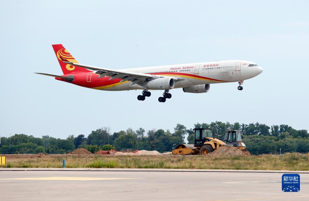 7月16日,直航航班飞抵塞尔维亚贝尔格莱德机场。新华社发(普雷德拉格·米洛萨夫列维奇摄)