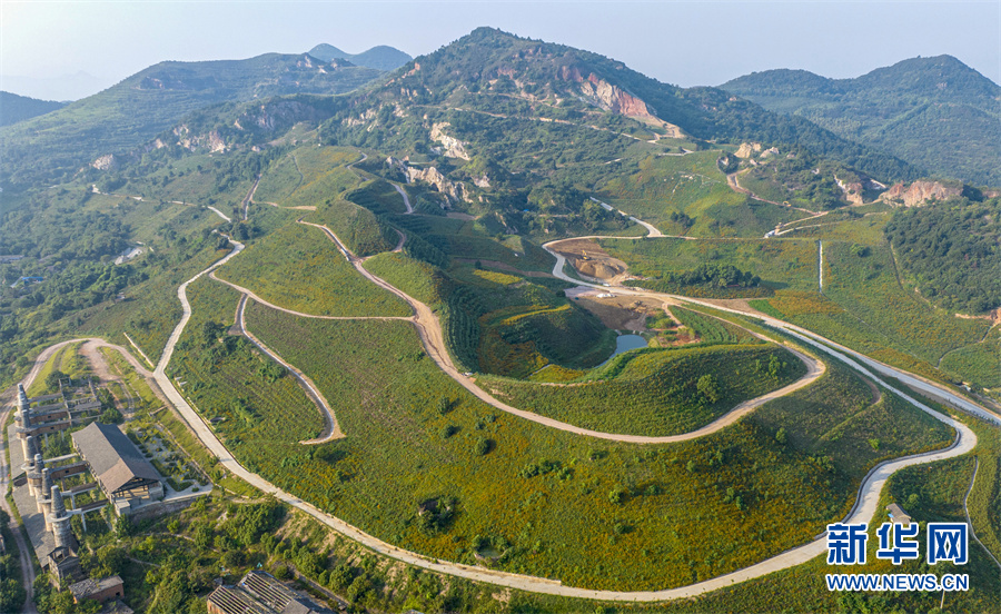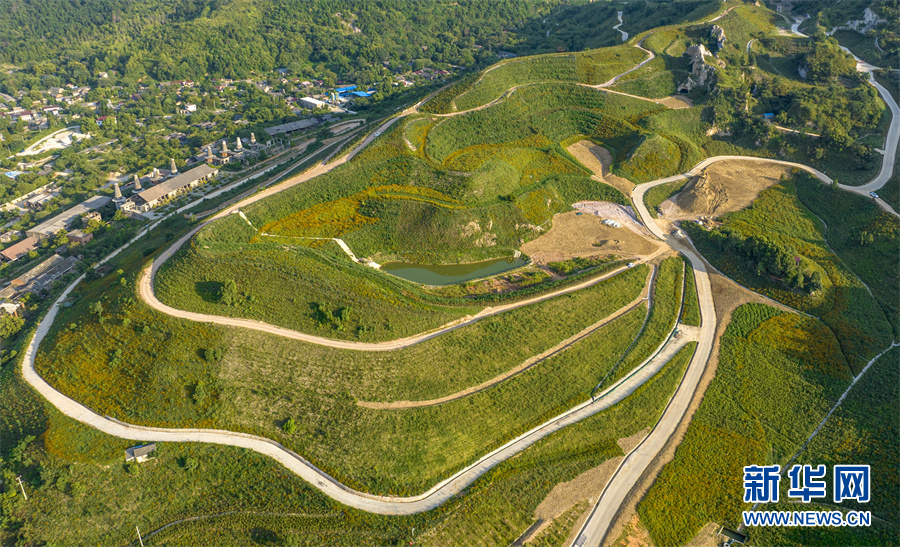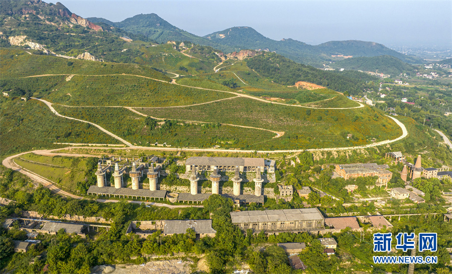 近年来,庐江县全面推进环境保护和生态建设,对庐江矾矿废弃矿山的地形地貌进行重塑,消除地质灾害隐患,达到与周边地形地貌相融合。目前,修复工程初见成效,废弃多年的矿山建成工业遗址文化主题公园,山坡披上了“绿装”。新华网发(左学长 摄)