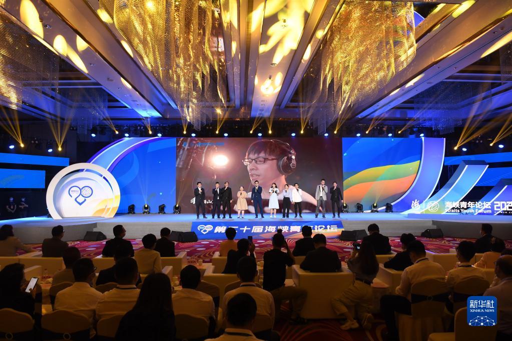 台湾青年在第二十届海峡青年论坛上演唱歌曲(2022年7月12日摄)。新华社记者 林善传 摄