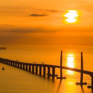 港珠澳大桥海上日出(2019年8月7日摄,无人机照片)。新华社发