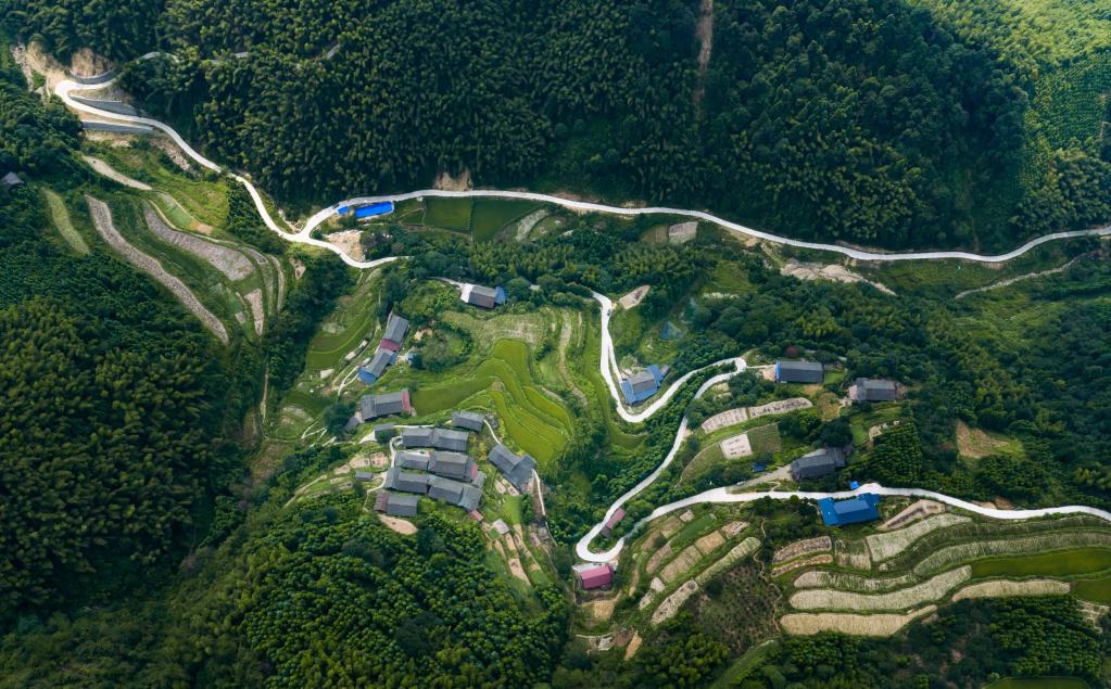 湖南省会同县金竹镇山里修建的林道(无人机照片)。新华社发(张镭 摄)