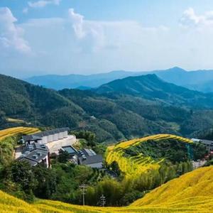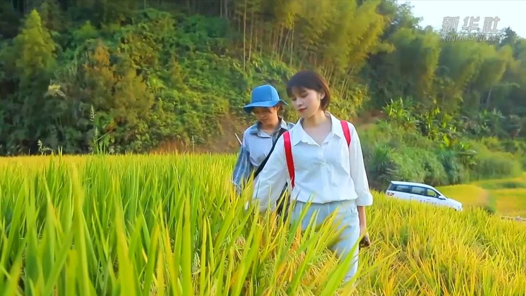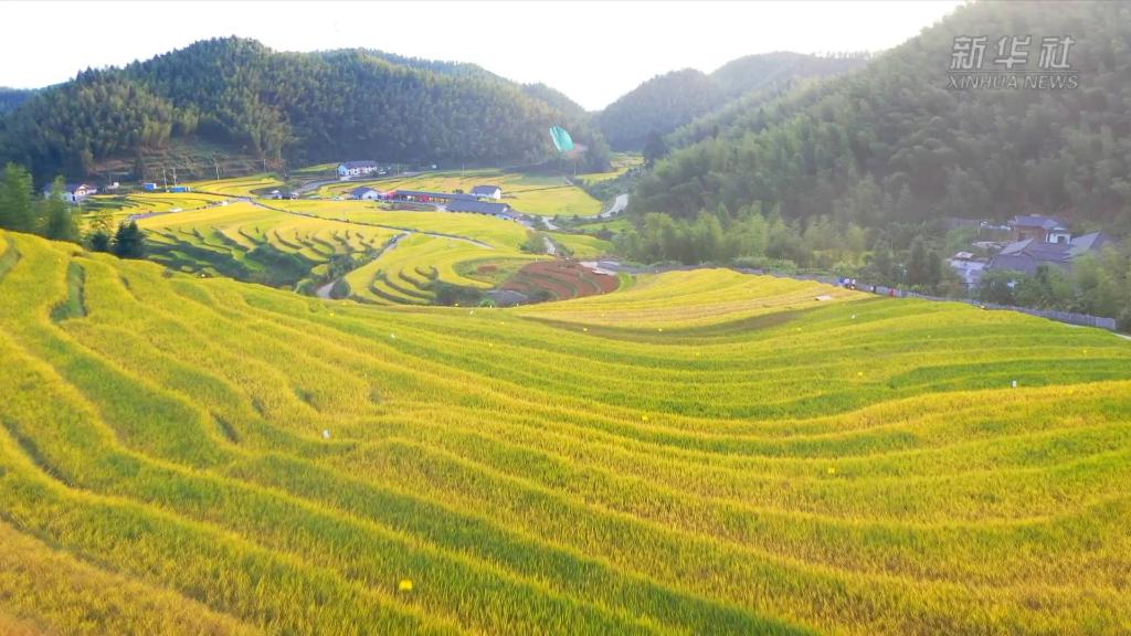 金秋十月,江西崇义县的上堡梯田里,阵阵稻浪吸引了大批游客打卡拍照。