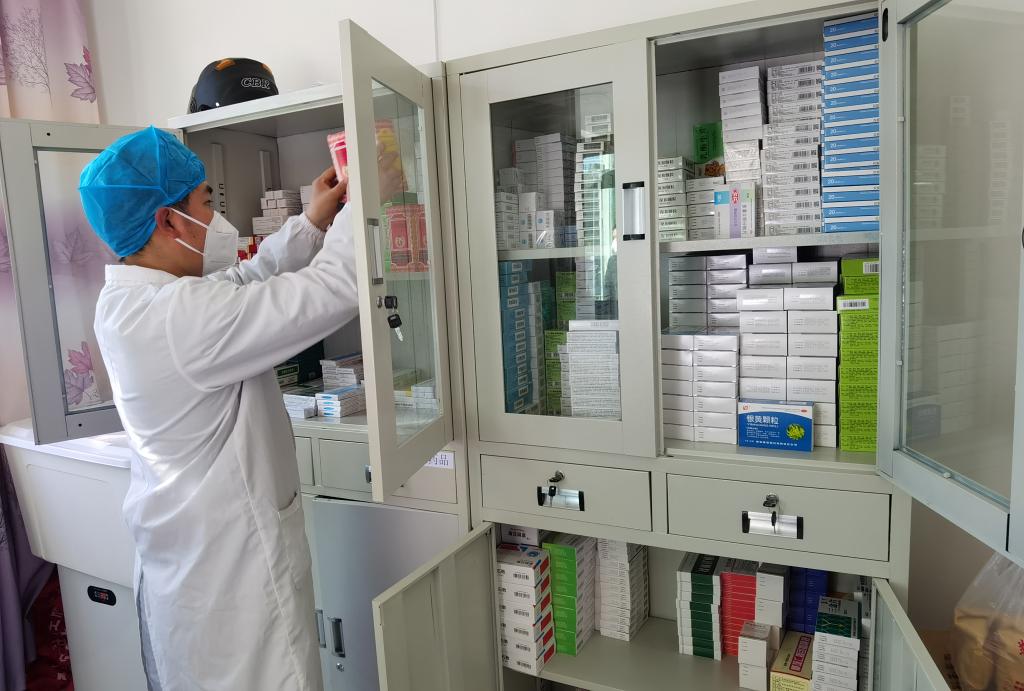 1月13日,贵州省安顺市普定县猴场苗族仡佬族乡大地村村医陶俊宏在村卫生室整理药品。新华社记者齐健 摄