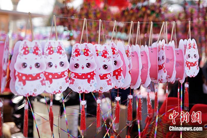 庙会上,“兔”元素处处可见。中新财经 葛成 摄