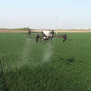 河北省馆陶县樊堡村种粮户在用无人机给小麦喷洒药物。新华社记者 赵鸿宇 摄