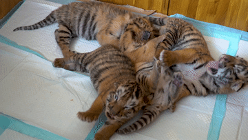 近日,黑龙江东北虎林园迎来了17只新降生的“虎娃”。饲养员们要24小时守护,给虎宝宝喂奶、测体温、促排便。